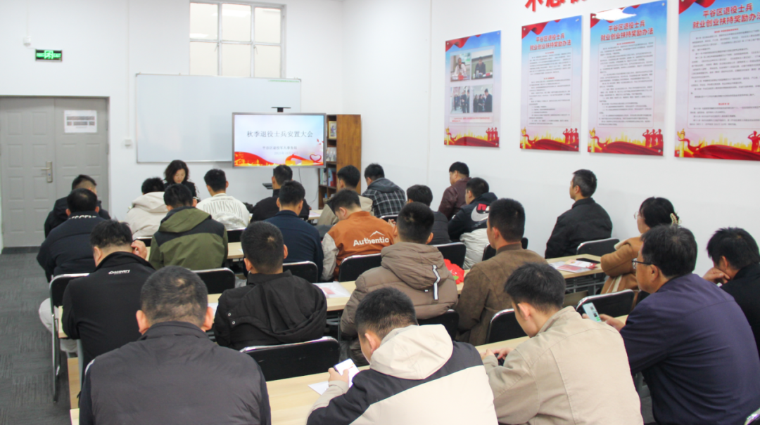 平谷区退役军人事务局举办秋季退役士兵安置及适应性培训会,30余名退役军人参加。