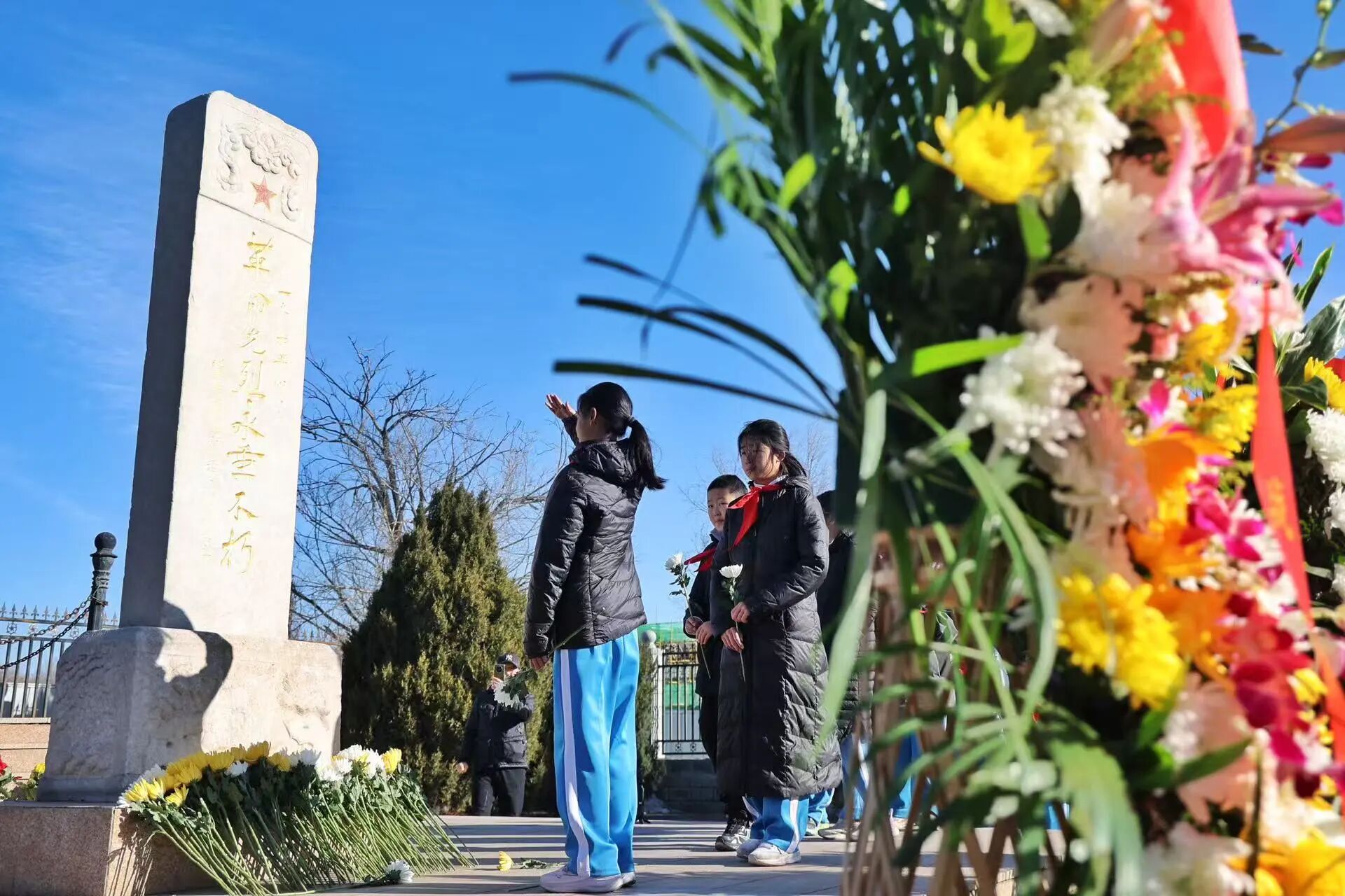 活动当日,六郎庄烈士墓庄严肃穆,苍松翠柏在寒风中静静伫立。全体人员前往六郎庄烈士墓举行纪念活动。西苑小学的学生们齐声唱响《我们是共产主义接班人》,稚嫩而坚定的歌声饱含对先烈的敬仰与对祖国的热爱。随后,内蒙古敖汉旗退役军人事务局、烈士亲属以及天津平津战役纪念馆、驻区部队代表共同敬献花篮。全体人员依次上前向烈士敬献鲜花,朵朵鲜花寄托着后辈对先烈的无限缅怀。