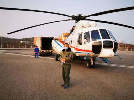 2月3日,运输任务再次展开,田军驾驶直升机于下午2点准时从武汉药品仓库起飞,装载着满满的药品、防护服和口罩等物资飞往宜昌。