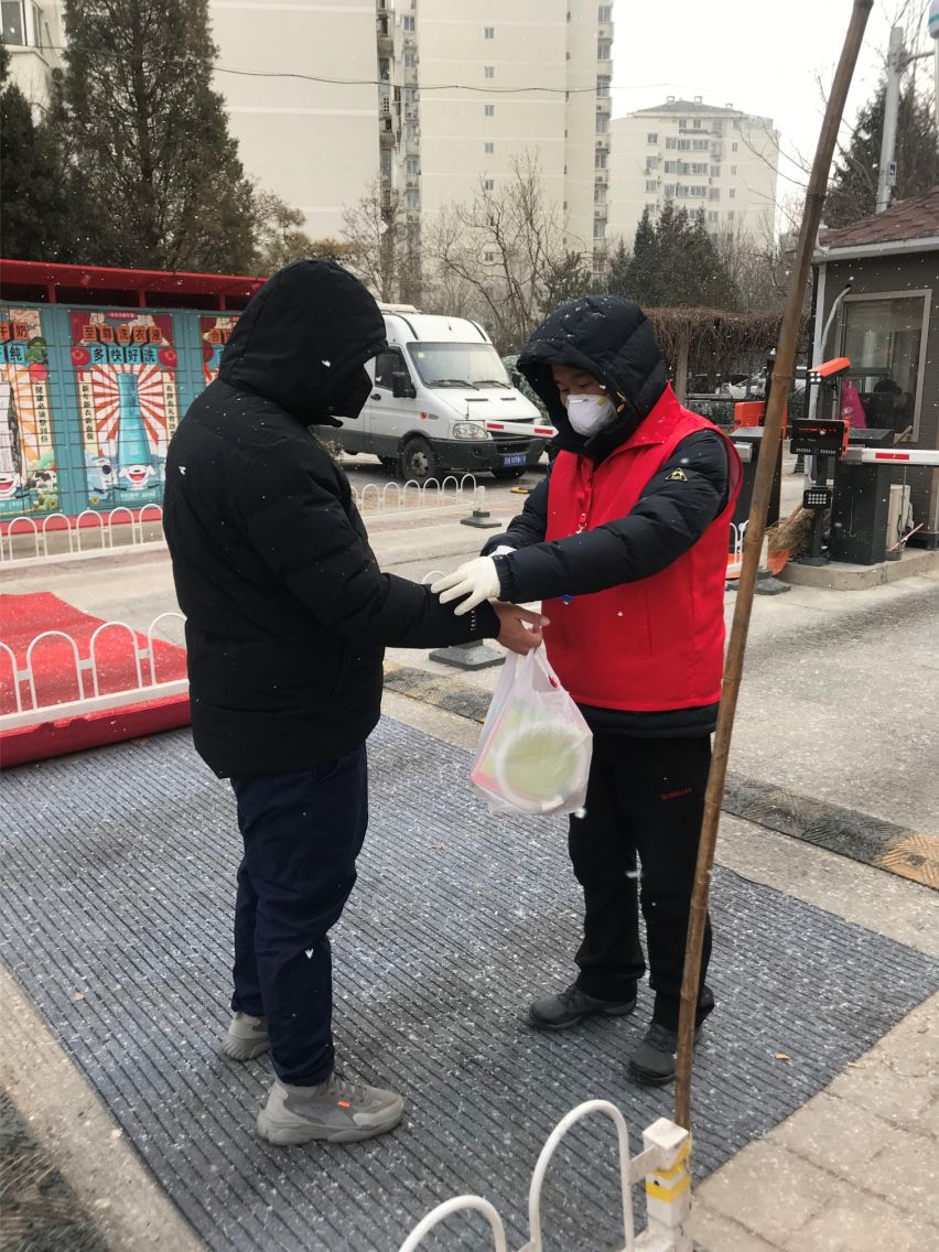 每日清晨,杨文兵准时来到社区卡口上岗服务,对来往的每一个人耐心进行询问,并把相关注意事项详细解释一遍,他语气亲切,虽然戴着口罩,但从那双弯弯的小眼睛上也能看出面带微笑,给居民们留下了深刻印象。面对严寒漫天飘雪,他怕手中的体温枪不工作,就把它揣在怀里捂着,怕居民进出小区走路滑,就赶忙找来扫把把雪清扫干净,在岗位上由于要不停地说话询问,经常口干舌燥,但他不敢多喝一口水,因为怕去远处上厕所耽误工作,每天长时间戴口罩,脸上起了湿疹,他就调侃自己说:“我这是高原红”。社区的老党员看他这么负责任,还给他专门做了一段flash,在社区群里宣传,他与社区工作者们身上的红马甲,已然成为了这个冬日一道靓丽的风景。