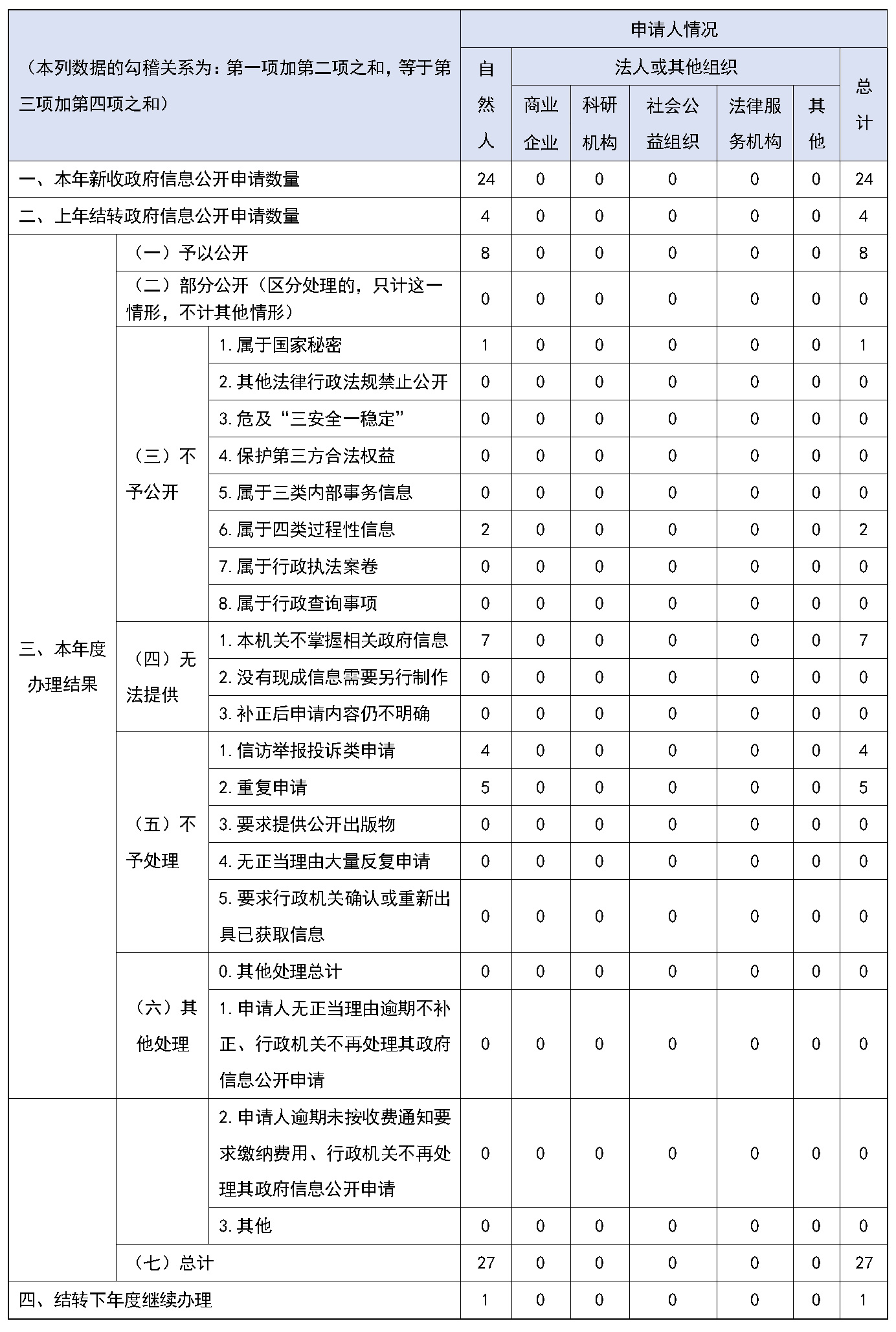 三、收到和处理政府信息公开申请情况