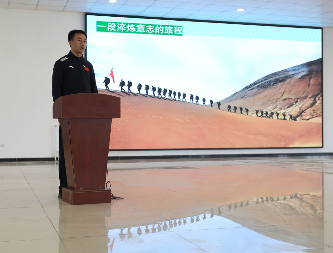 以《续写荣光》为题,宣讲员李树录讲述了自己在退役后作为一名体育教师,为我国偏远地区体育教育事业做出努力的人生经历。“2022年,我报名参加了北京市第十一批第一期“组团式”教育援疆工作,从军营到校园,从北京到和田,变的是身份与“战场”,不变的是初心与担当。”