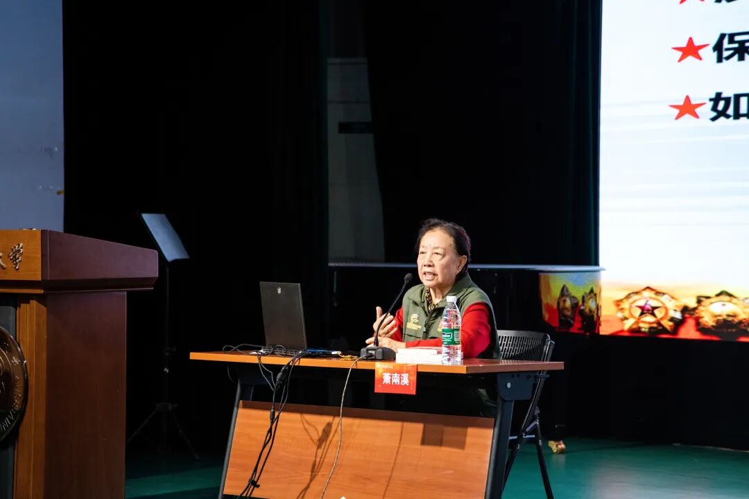 开国将军萧锋之女、北京装甲兵工程学院副教授萧南溪,通过父辈的烽火岁月与革命精神,深情追溯了人民军队的红色根脉,阐释了忠诚与信仰的力量,令在场同学无不动容。