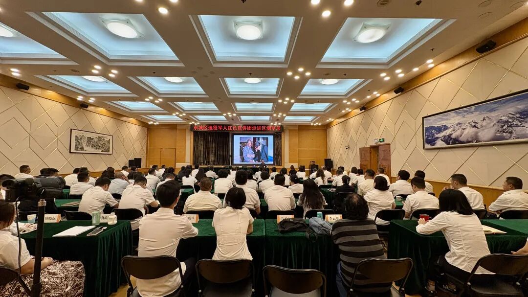 为纪念中国人民抗日战争暨世界反法西斯战争胜利80周年、庆祝中国共产党成立104周年,东城区退役军人红色宣讲团启动进机关宣讲活动。6月30日,第一场进机关宣讲活动在区烟草局开展,100余人干部职工及部分退役军人代表参加。
