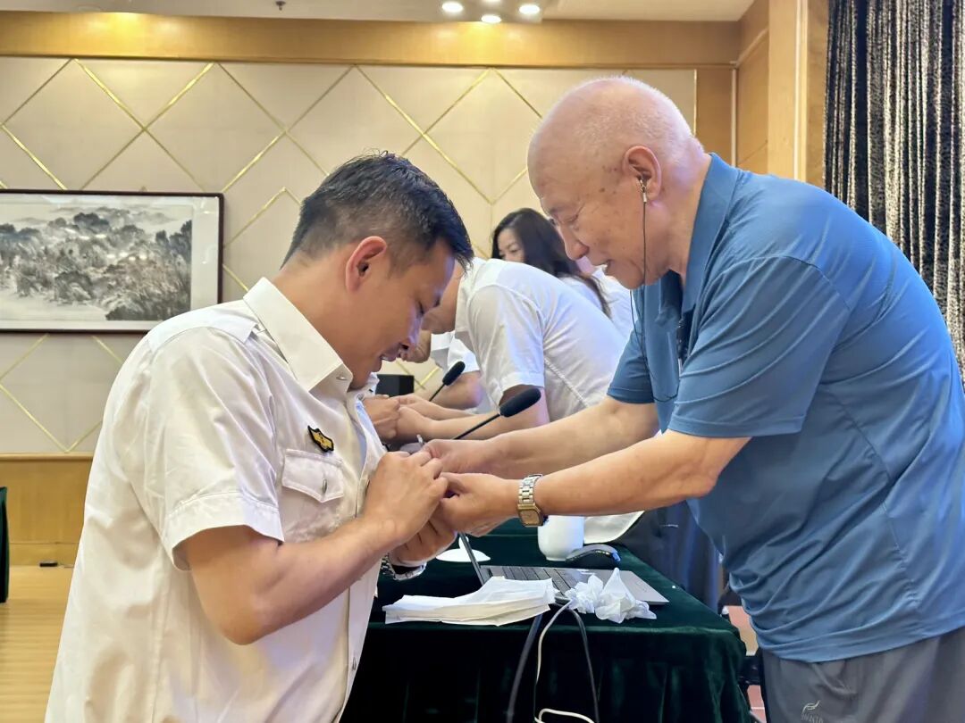 活动最后,吴铁壁老师作为一名老党员,上台为烟草局发展的新党员佩戴党员徽章,这一刻,使红色基因的传承更加具象化。宣讲活动在区烟草局引发强烈反响,党员干部们纷纷表示:这不仅是一次党史学习教育,更是一次深刻的精神洗礼和思想升华,大家将以此次宣讲为契机,把红色精神融入到日常工作中,立足岗位,敬业奉献。下一步,东城区退役军人红色宣讲团将继续深化与机关党组织的联动合作,让革命精神永存,让红色血脉永远赓续!
