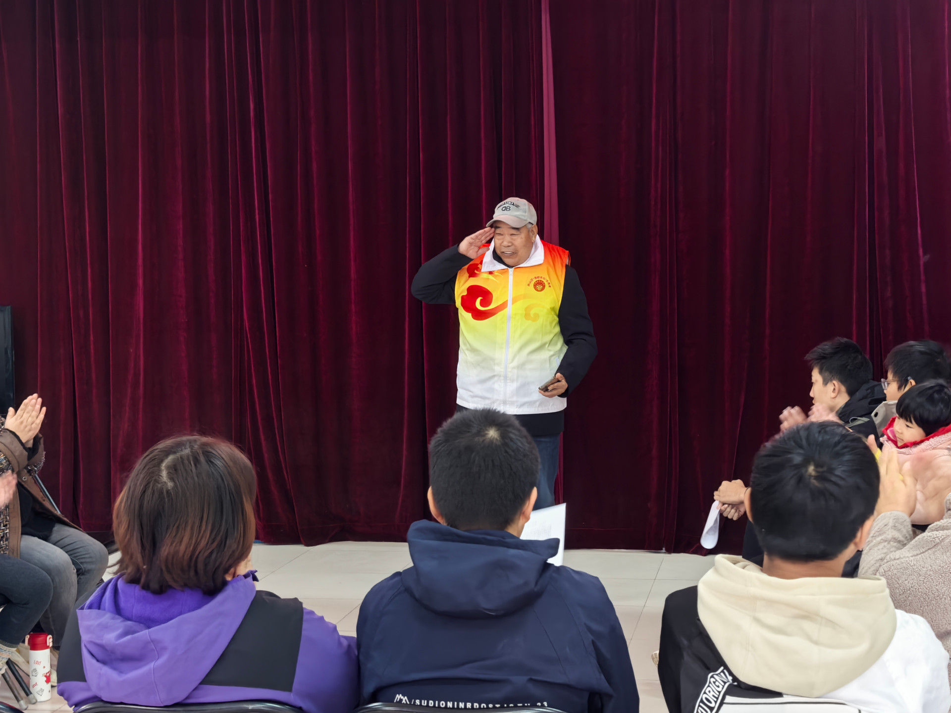 活动尾声,张文老兵满怀深情地为本次读书会创作了原创诗词,作为对同学们的殷切寄语:“读书相聚来四方,家长陪伴学之长,自信壮胆发言勇,敬烈从军勇发扬。”诗句朴实真挚,既饱含对本次读书会相聚时光的珍视,也寄托了对青少年传承英烈精神、勇担时代使命的期许,将整场读书会的氛围推向高潮。