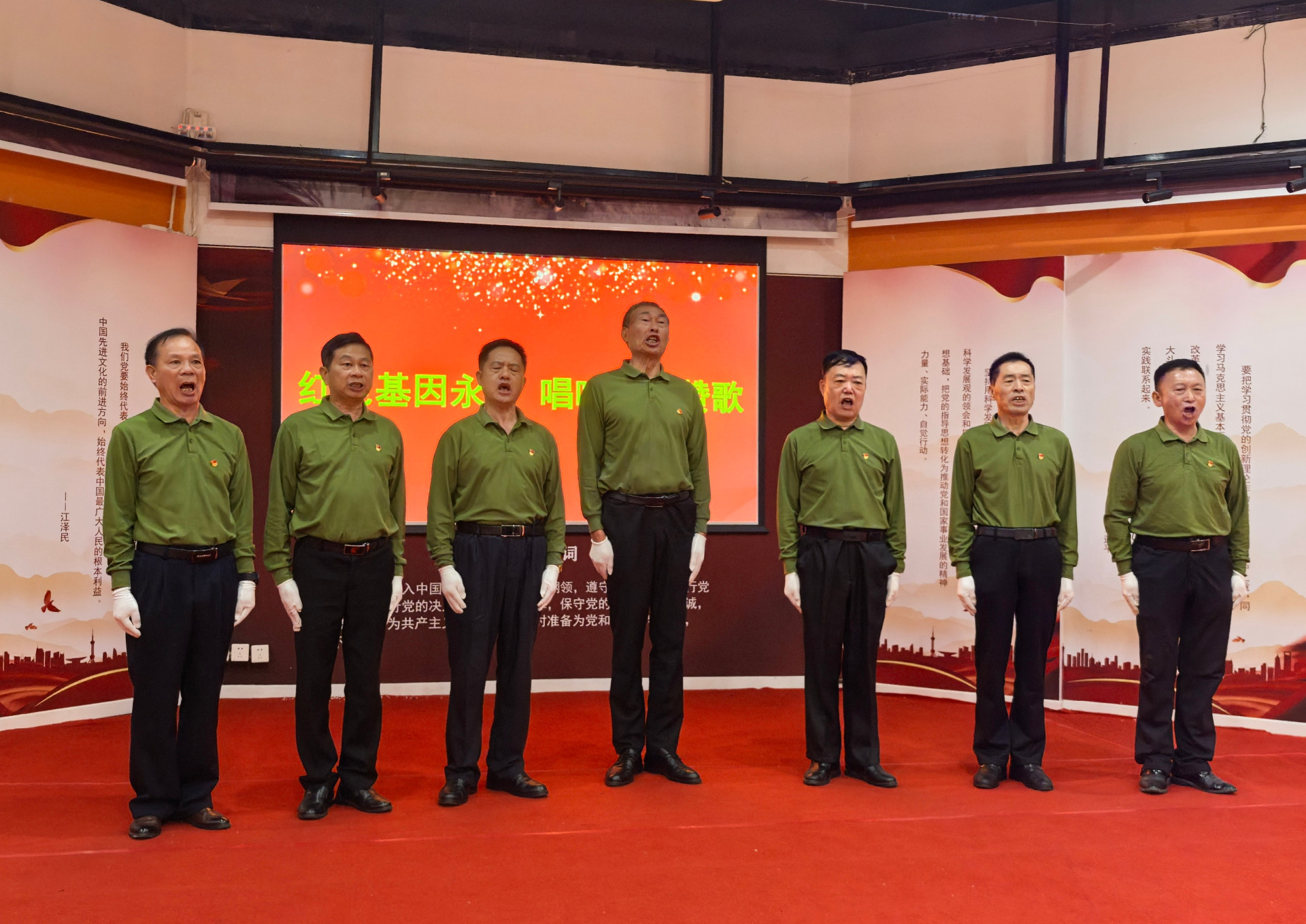 “退役军人,退役军人,我们是光荣的退役军人……”退役老兵陆红喜演唱《退役军人之歌》,嘹亮歌声里满是对军旅生涯的眷恋、对军人使命的坚守,唱出了退役军人“若有战,召必回”的豪情壮志。铁路老兵们身着整齐服装,以饱满精神合唱《强军战歌》,铿锵有力的旋律、振奋人心的歌词,点燃了在场观众的爱国热情。退役军人与少先队员合唱《我和我的祖国》,悠扬歌声旋律回荡在月亮湖红色教育基地上空,将活动气氛推向高潮,老少同沐红色氛围,共同礼赞祖国。